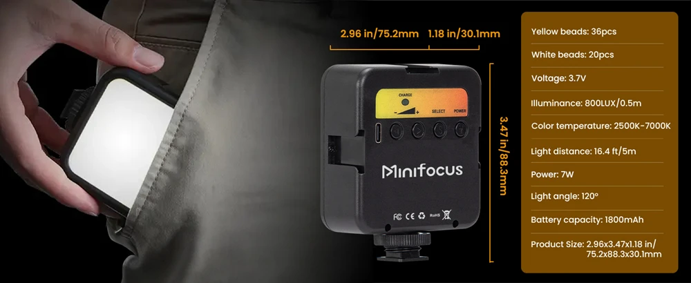 šš¢š š”šš°šš¢š š”š šš§š ššØš«šššš„š: Weighing just 4.8 ozs and measuring a compact 2.96 x 3.48 x 1.18 inches, this mini camera lighting for video recording is perfect for on-the-go use. Carry it with ease wherever you go and illuminate your scenes effortlessly.